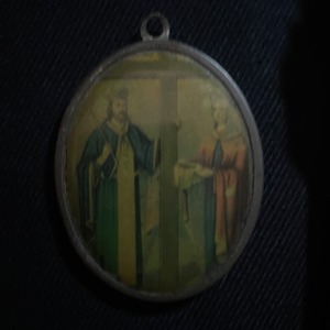 左側に王冠を被り笏を持つ男性はコンスタンティヌス1世(コンスタンティヌス大帝)、右側の女性は彼の母である聖ヘレナ H 5 W 4 cm /金属