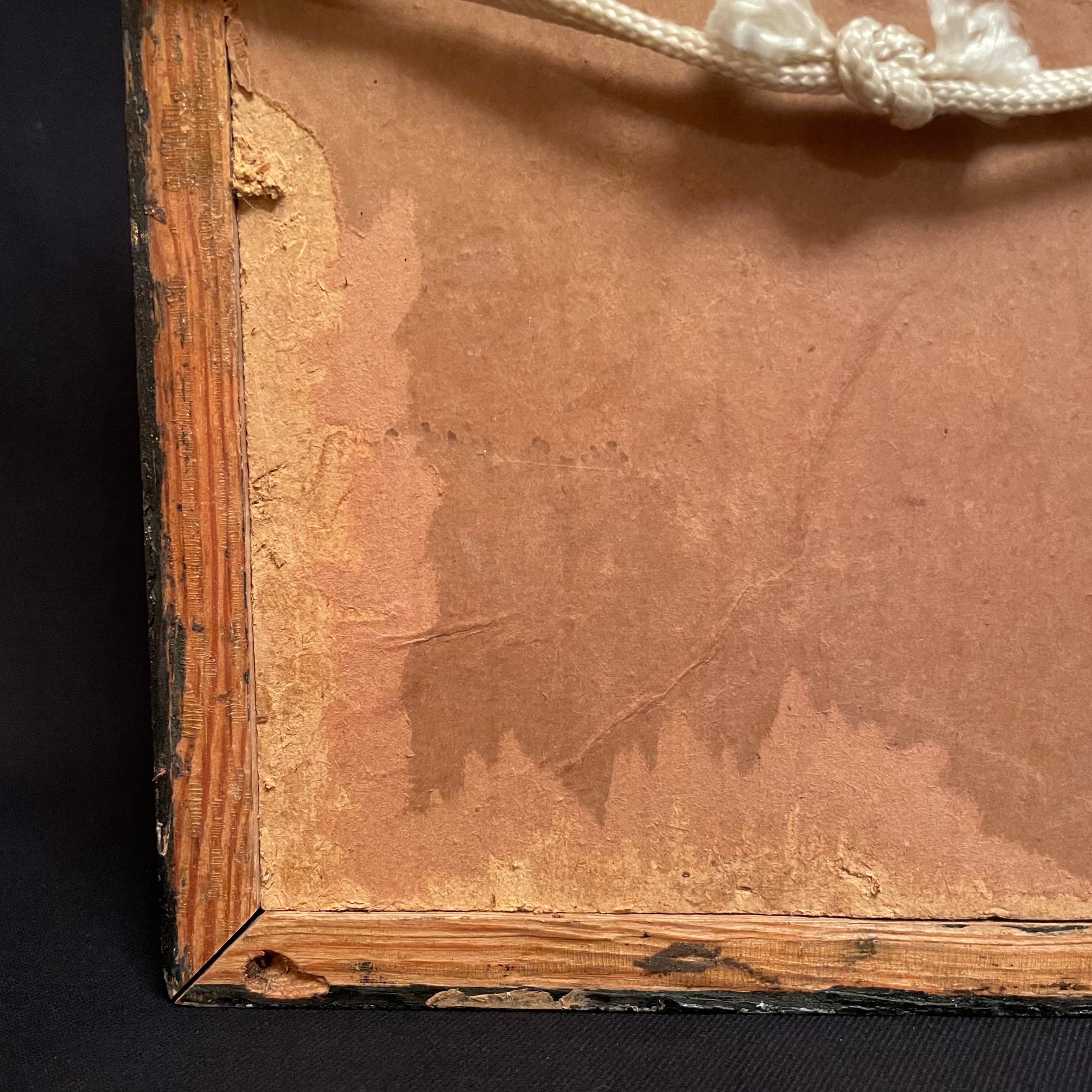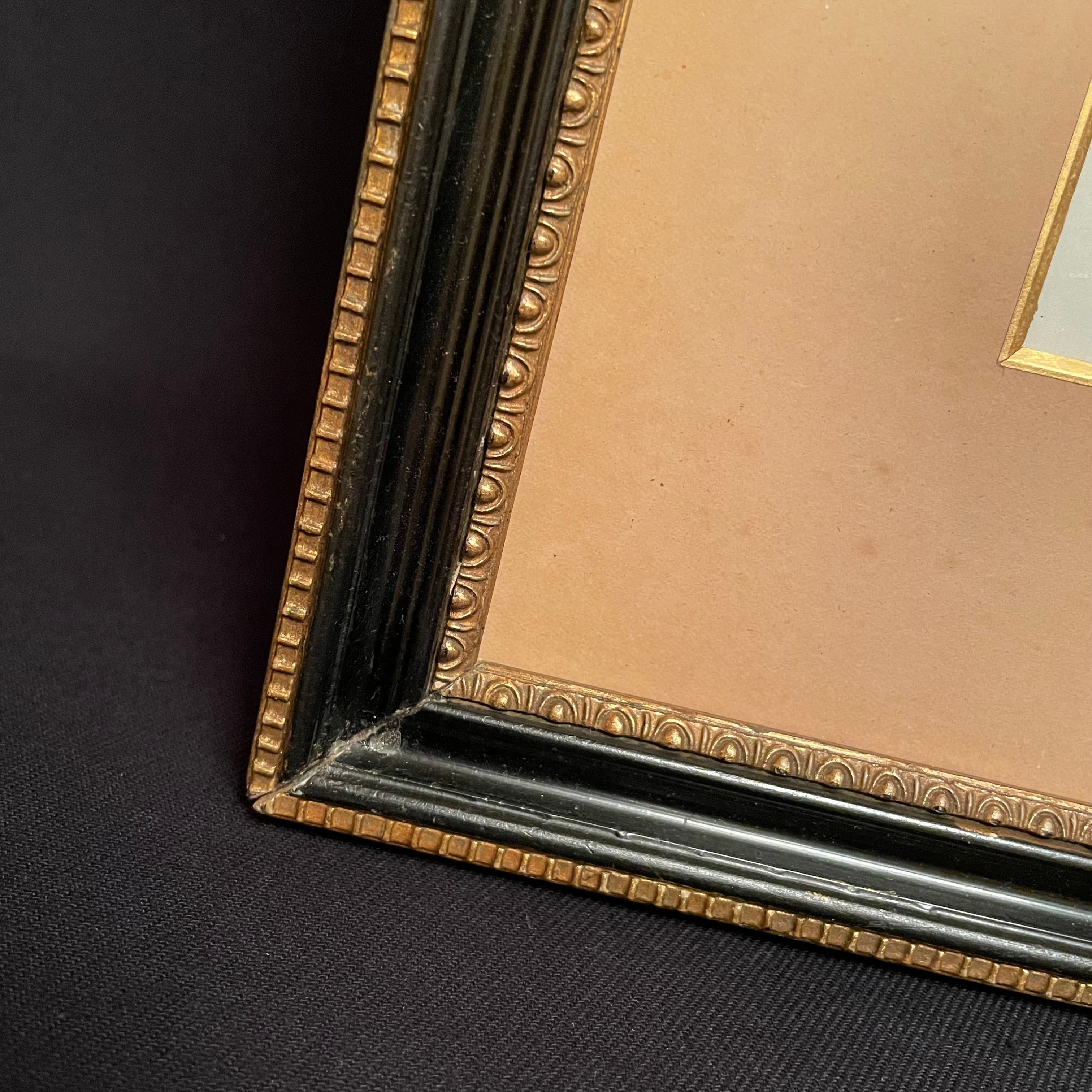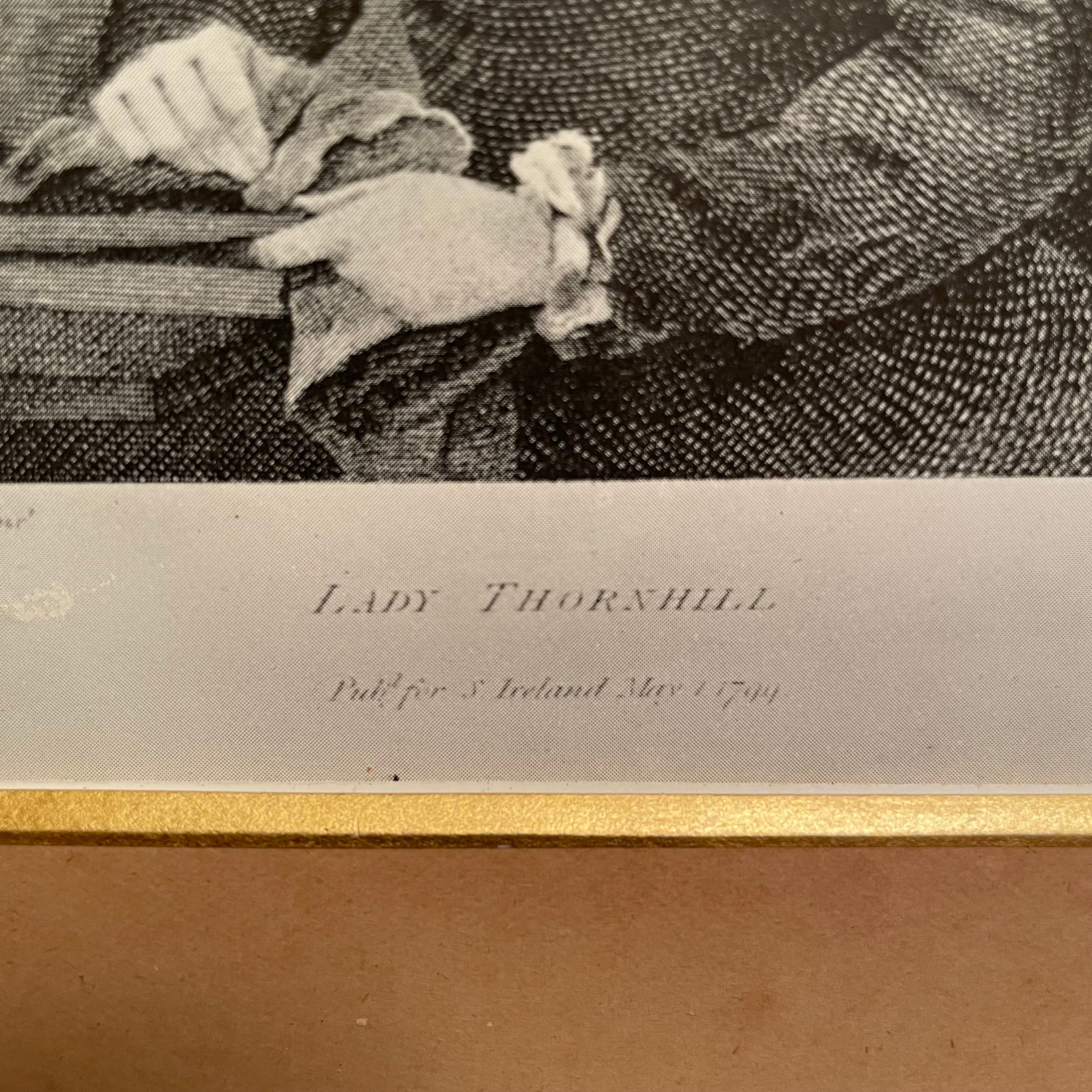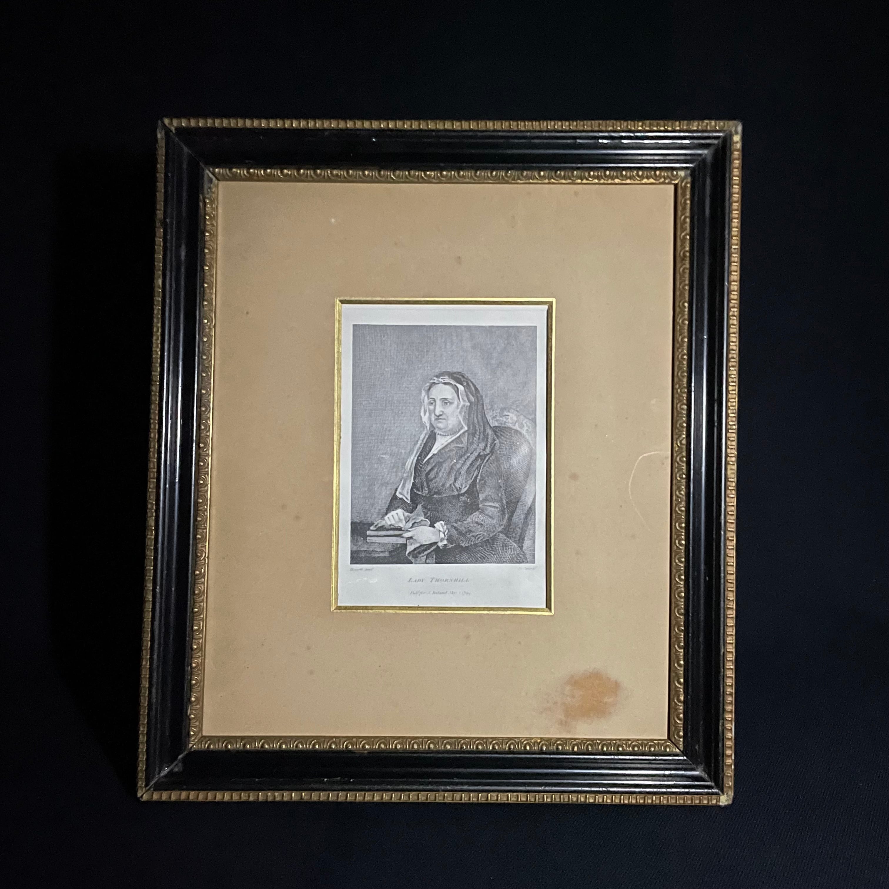 古い額にジェームズ・ソーンヒル卿の妻であるジュディス・ソーンヒル夫人(1673-1757)を描いた版画をイギリスでプリントされたパネルを納めました。