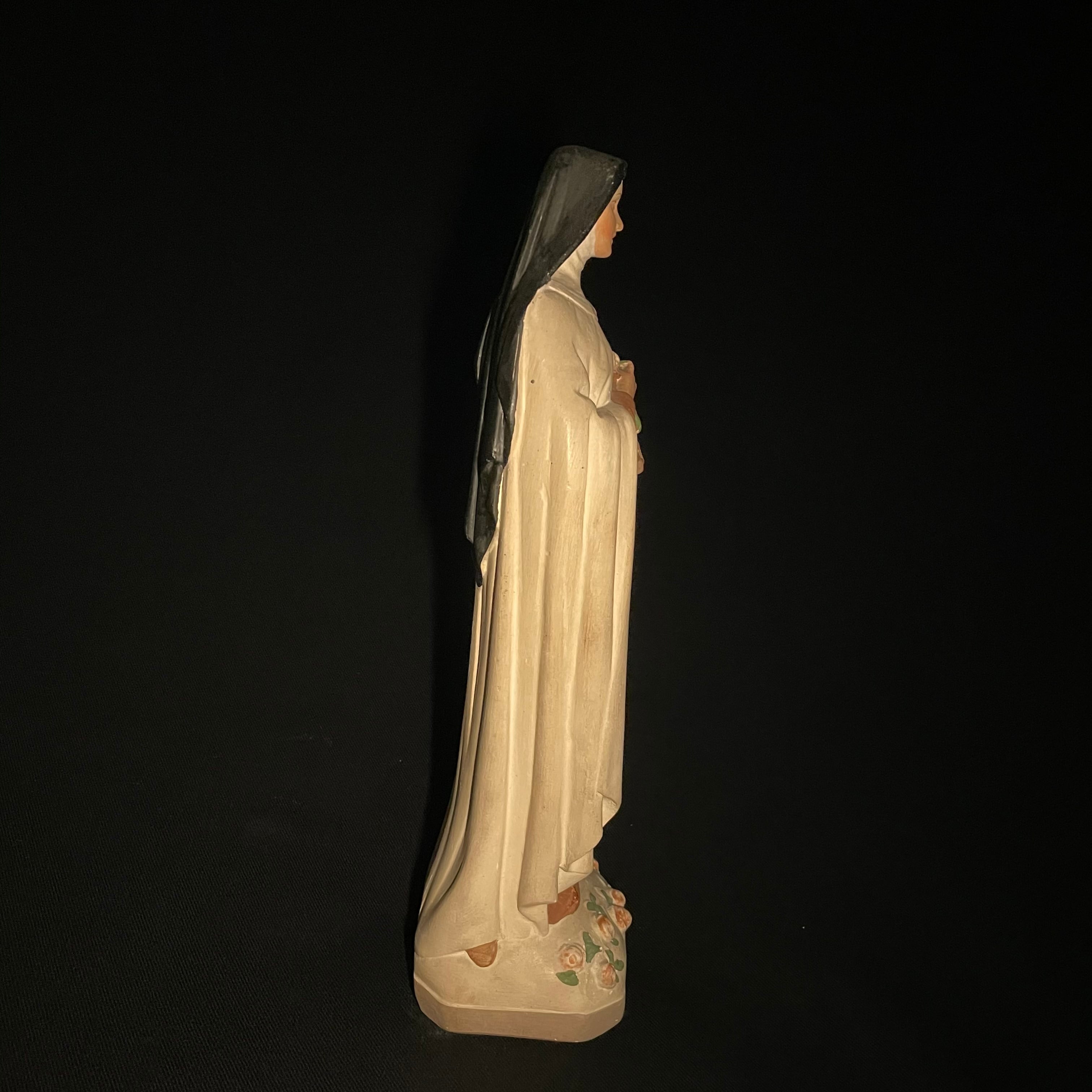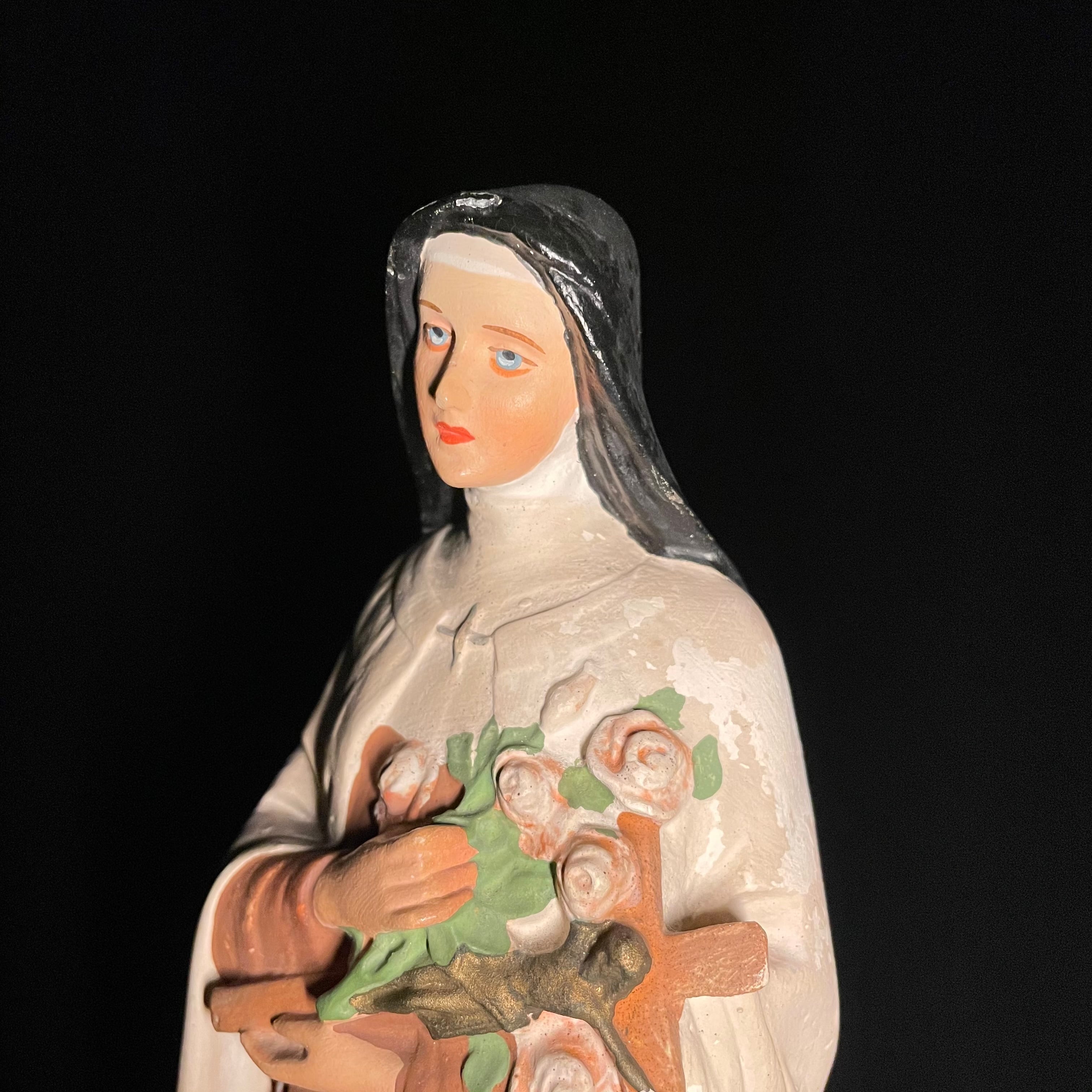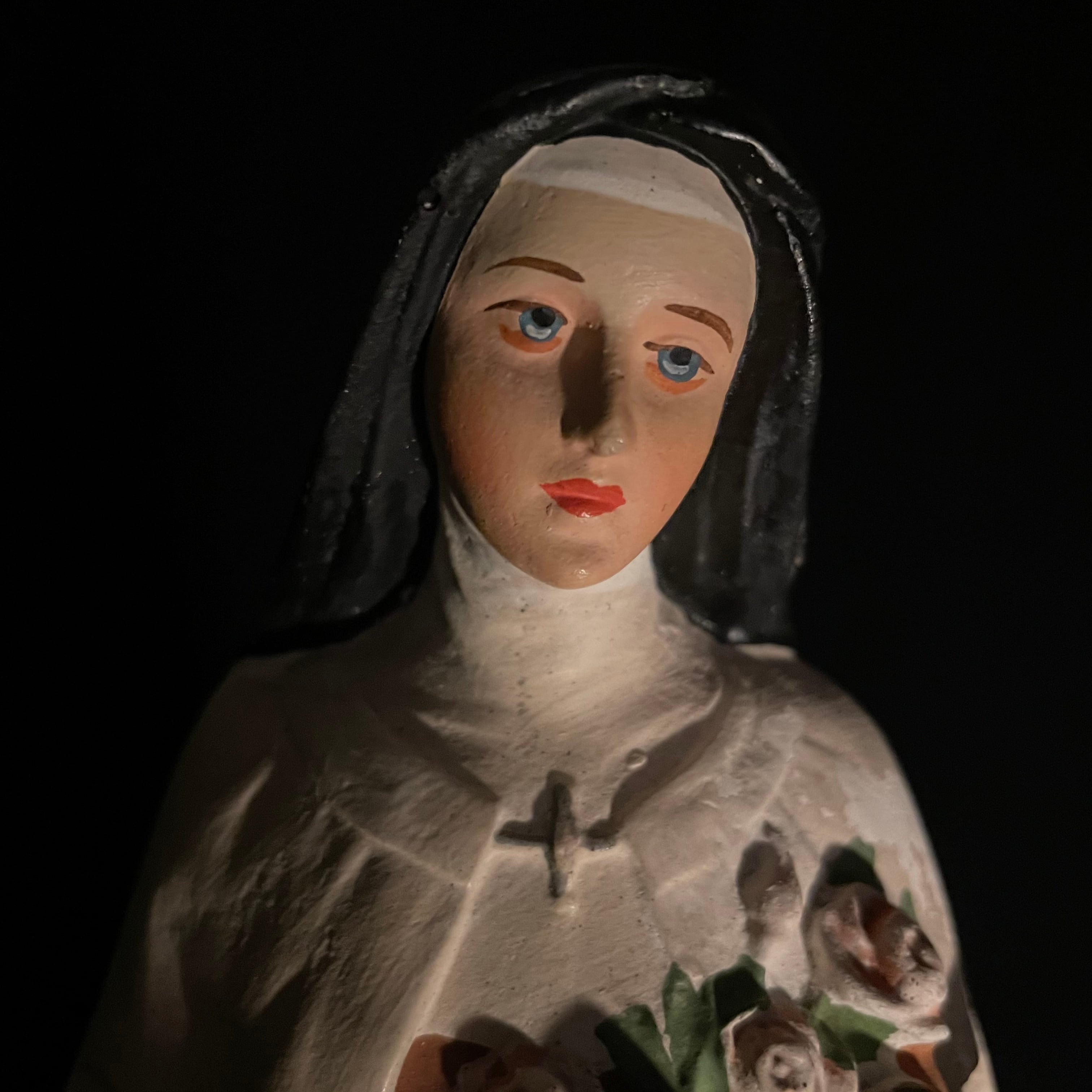 日本でも愛されているリジューのテレーズの石膏像です。若くしてこの世を去ってしまったテレーズですが、テレーズが死の直前に「私は地上に善を為すために天での時を過ごしましょう。私は天から薔薇の雨を降らせましょう。