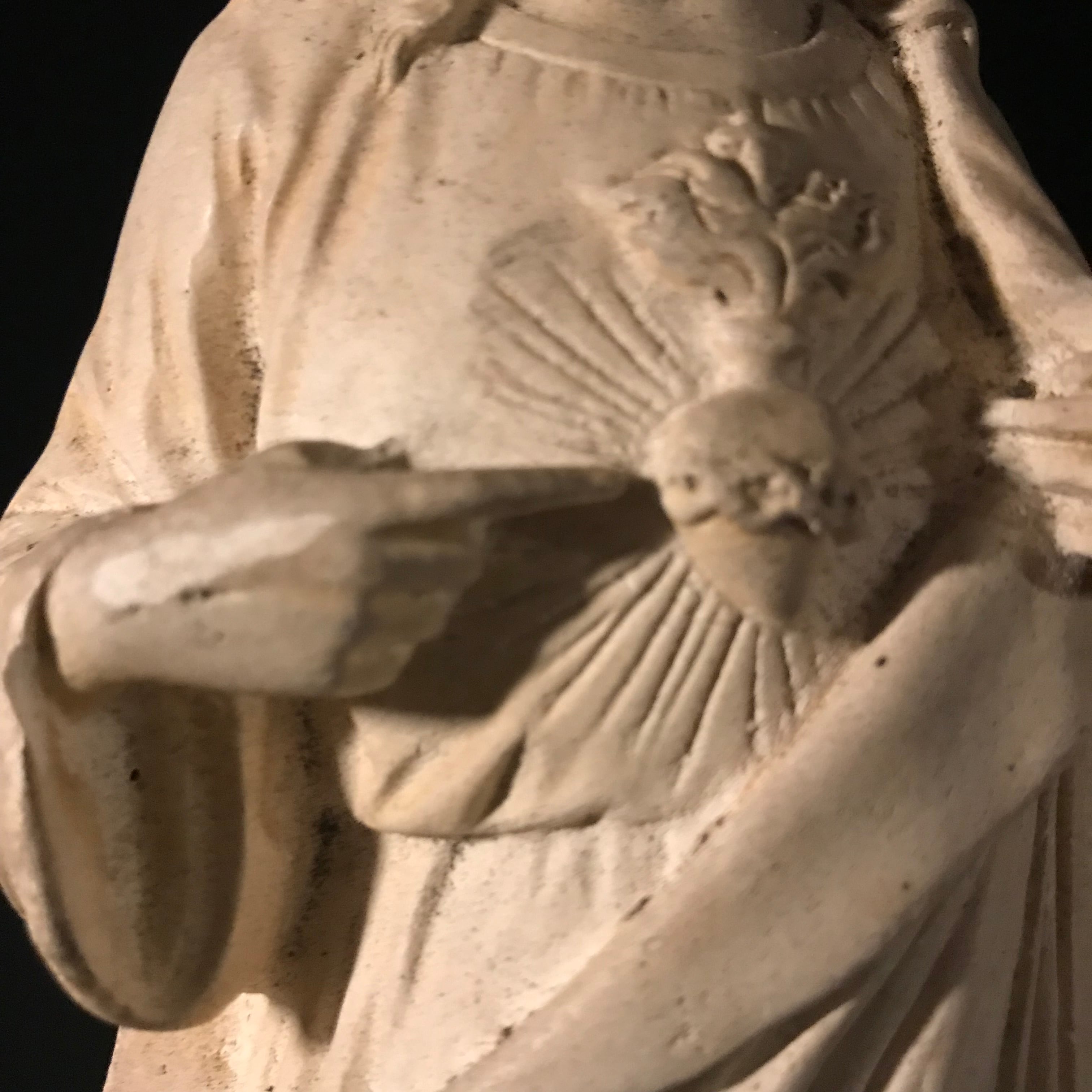 心臓には槍の傷があり、いばらの冠の傷口からは血を流されております。