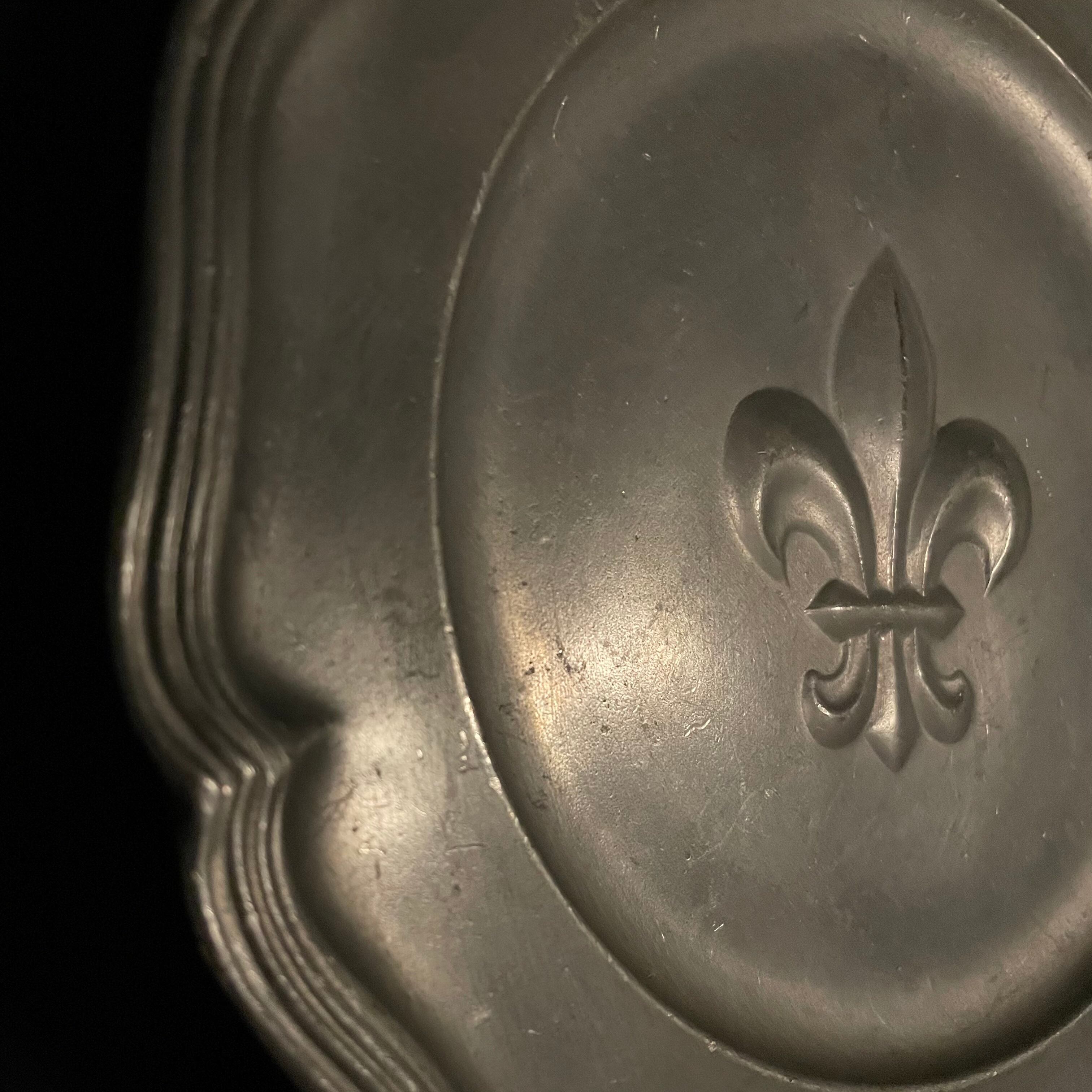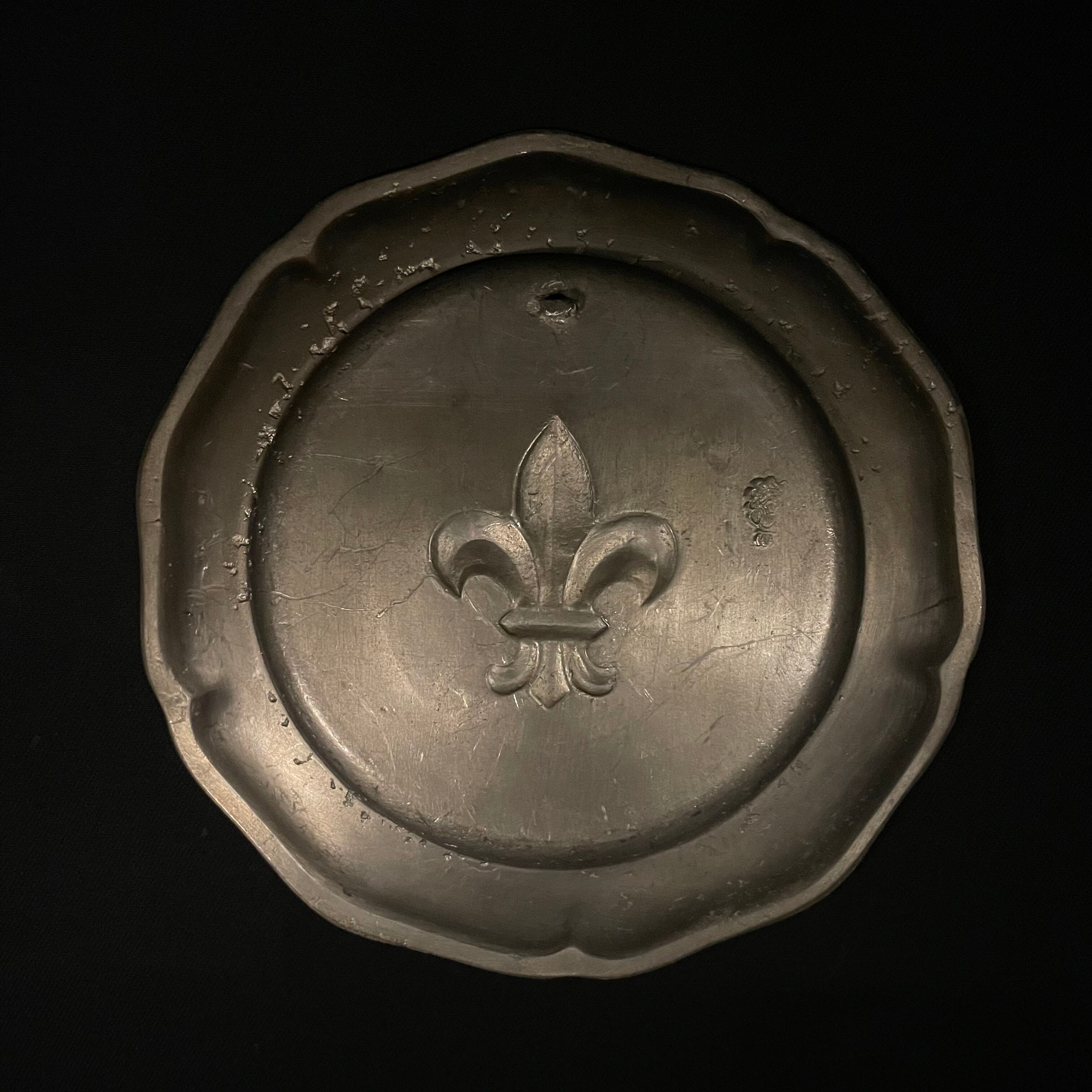 燻したようなマットな光沢を放つフルール・ド・リスの壁掛けプレート。