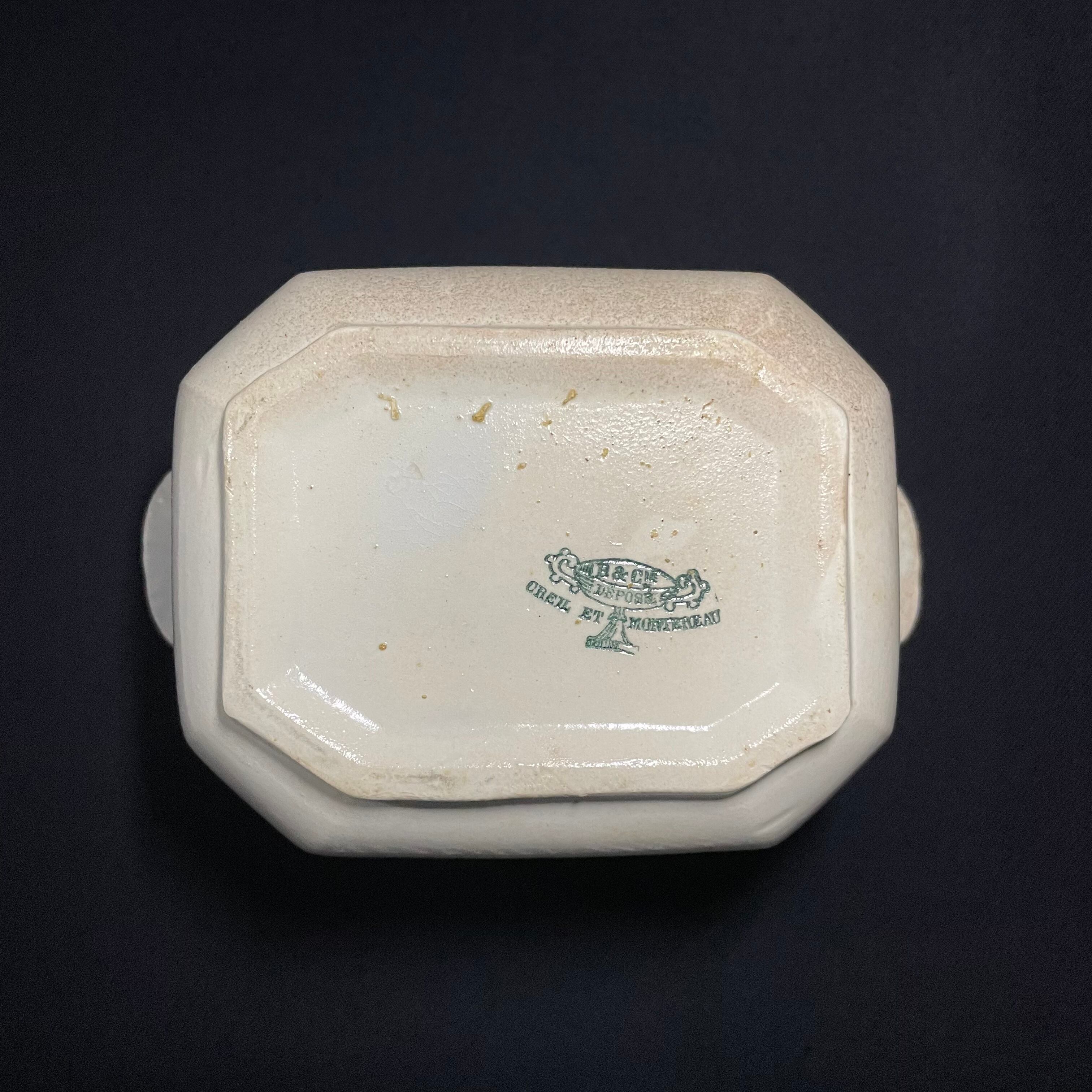1796年に開窯したクレイユと1700年代前半から陶器の製造を行っていたモントローが合併。その後も社名を変えるなどして1955年まで陶器の製造を続けました。クレイユの器はフランスならではの美しい佇まいをもった古陶として世界中に愛好家が多いブランドです。